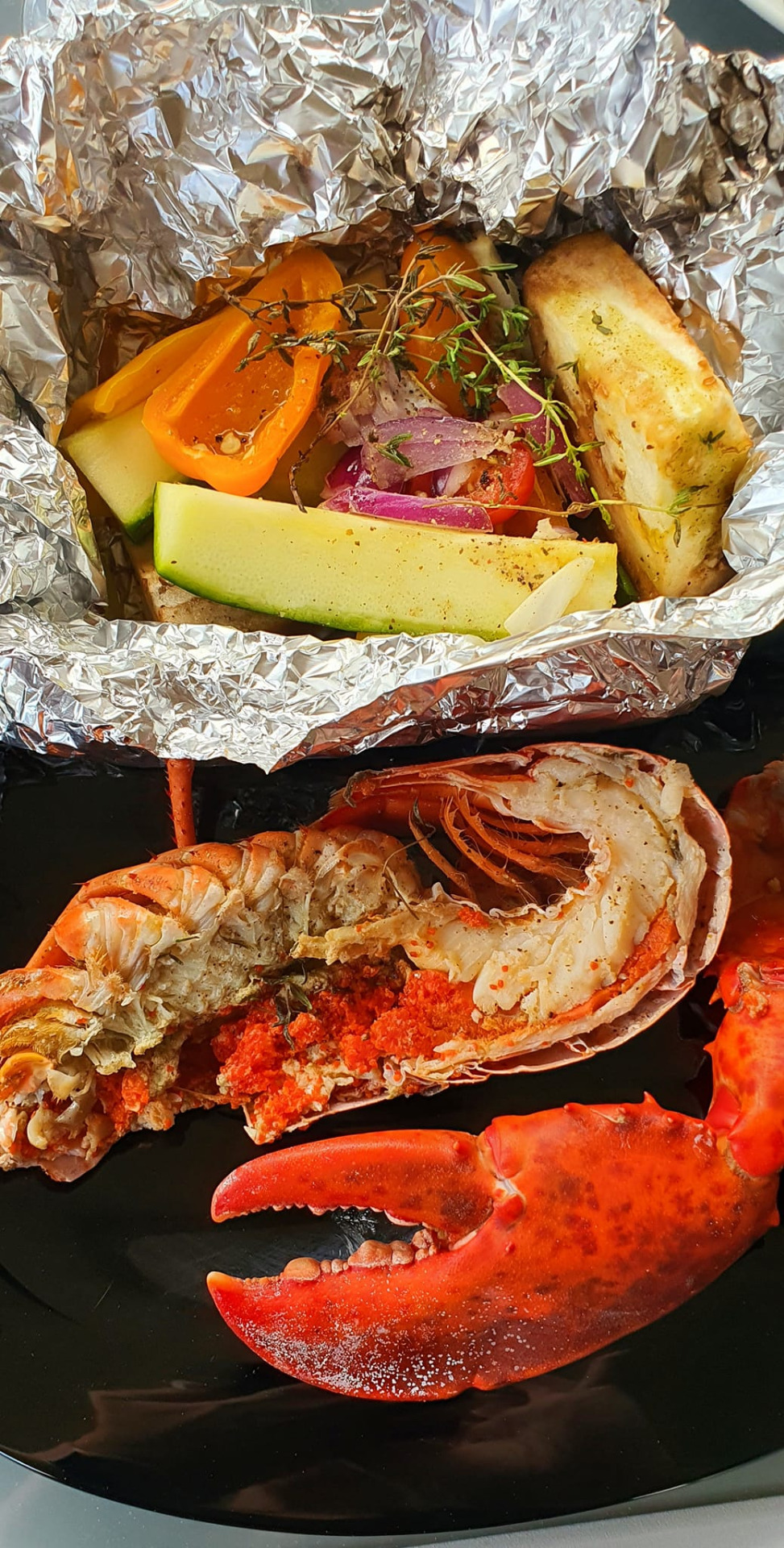 Nage de Langoustines, Coquillages et Saumon en croûte