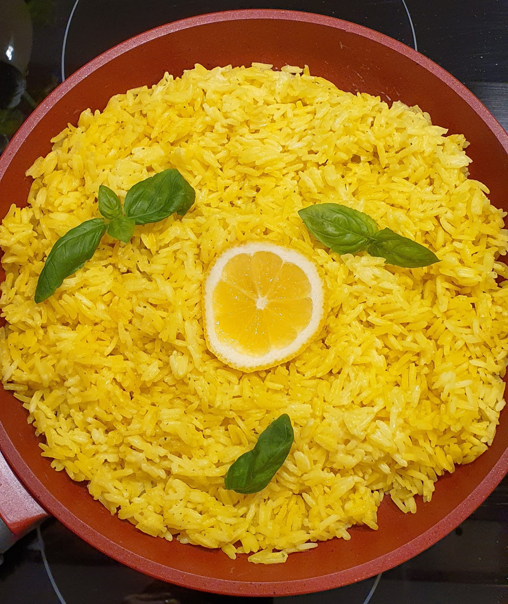 Après 5 min de cuisson ajoutez le riz et bien mélanger puis augmentez le feu. Ajoutez le safran et le piment, puis versez le bouillon de volaille. Mélangez, salez et poivrez à votre convenance.